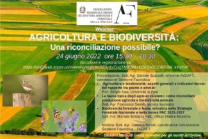 A questo proposito, segnaliamo con piacere un importante webinar promosso dalla Federazione Regionale Ordini dei Dottori Agronomi e Forestali della Toscana dal titolo: “Agricoltura e Biodiversità: una riconciliazione possibile?” che si svolgerà domani venerdì 24 giugno alle ore 15.30.