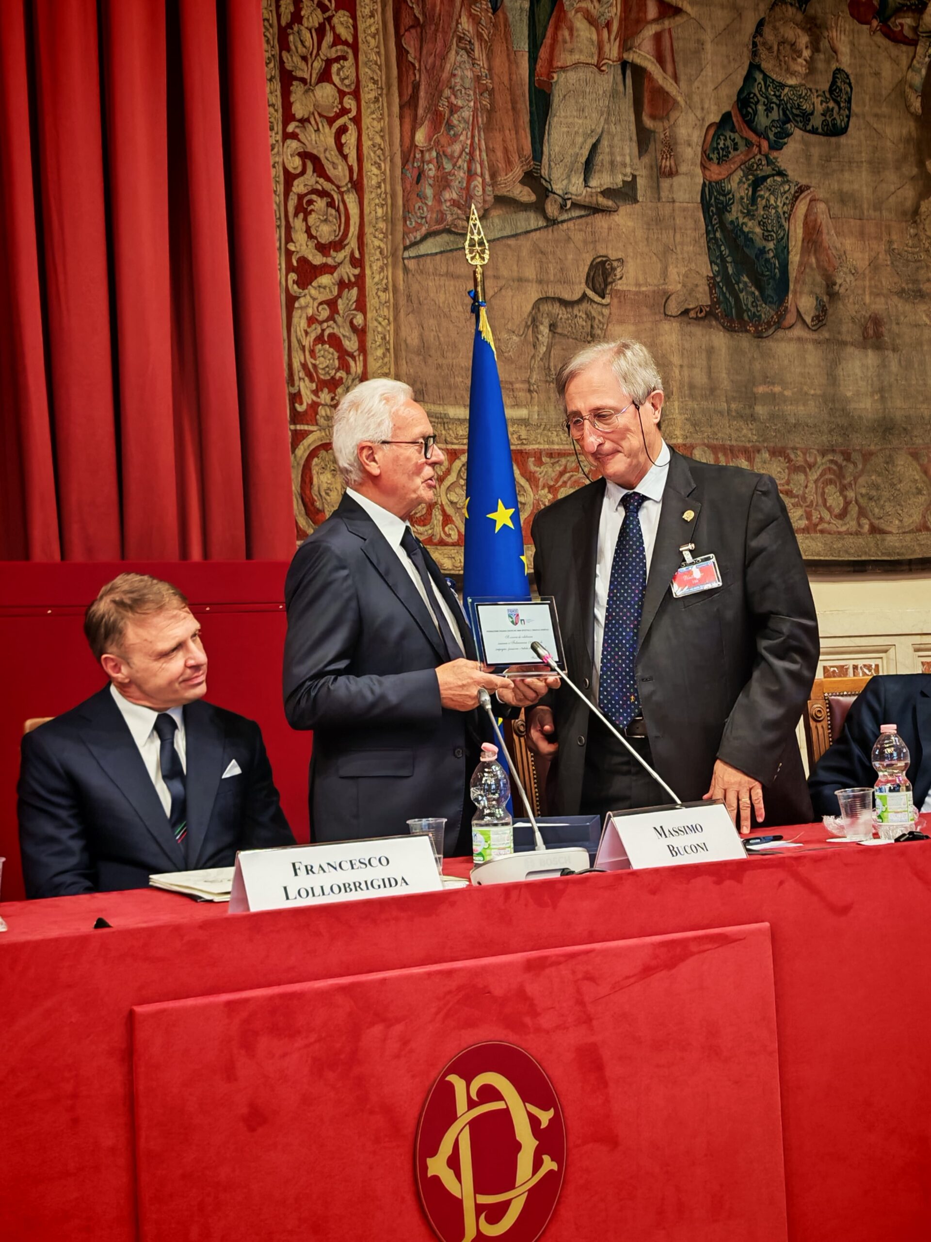 In sala anche il Presidente FIDASC Felice Buglione, che ha fatto omaggio al Presidente Buconi di una targa appositamente realizzata per la ricorrenza, e il Presidente di Arcicaccia Christian Maffei. Insieme a loro, Maurizio Zipponi, Presidente CNCN e Fondazione UNA; il Presidente di ANPAM Andrea Andreani; Marina Berlinghieri in rappresentanza della Beretta; l’on. Michl Ebner, Past President FACE.