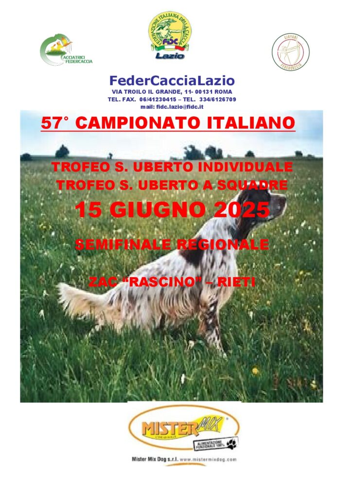 La Federcaccia Lazio organizza il prossimo 15 giugno presso la zona addestramento cani “Rascino” (Rieti), la semifinale regionale del 57° Campionato italiano trofeo S.Uberto individuale e a sqaudre.