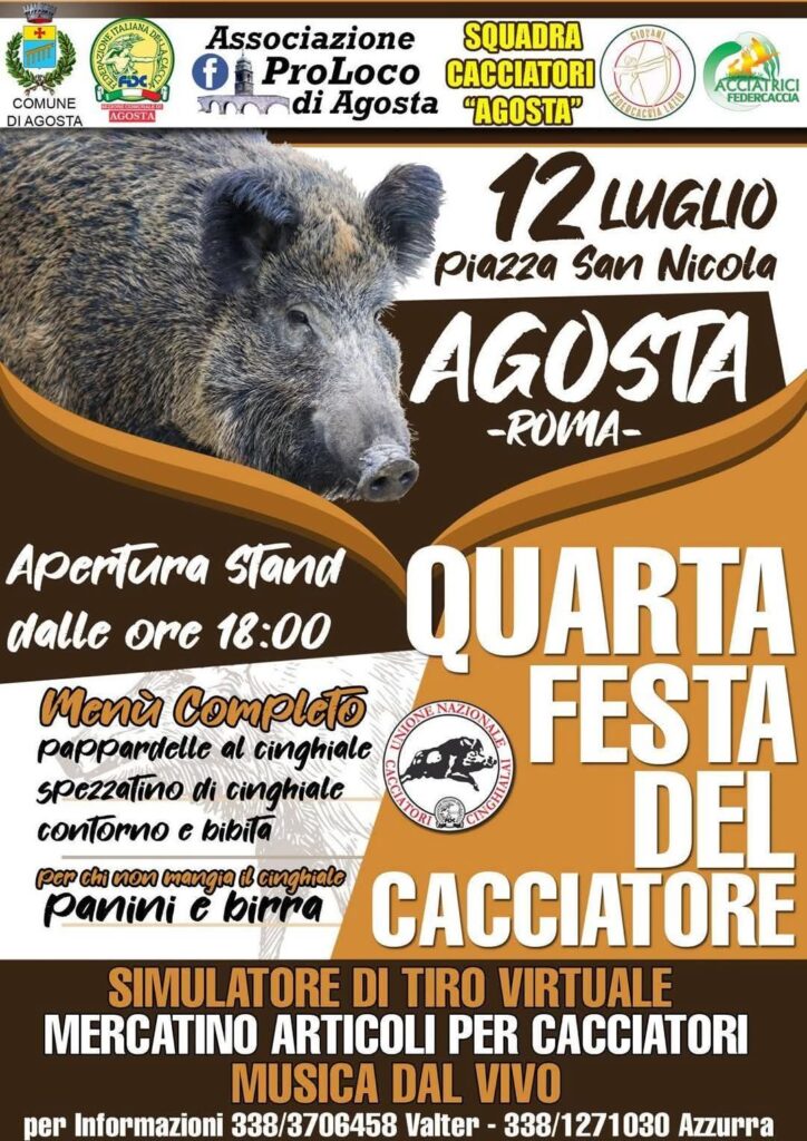 Giunta alla sua 4° edizione, il prossimo sabato 12 luglio in Piazza San Nicola (Agosta, Roma) si svolgerà la Festa del Cacciatore, nella splendida cornice naturale della Valle dell’Aniene.