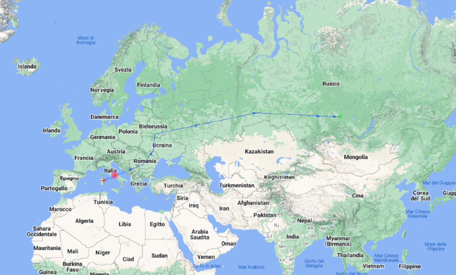 I tordi marcati in Sardegna hanno raggiunto due aree molto diverse: il primo, chiamato Irgoli, si trova in Ungheria e dai movimenti a breve raggio sembra decisamente assestato in zona di nidificazione, mentre l’altro individuo, chiamato Shedir, ha compiuto un incredibile viaggio che lo ha portato in Russia vicino al villaggio di Osinkova, nel territorio di Kransnoyarsk alla longitudine della Mongolia, quindi a una distanza di circa 6.000 km dal luogo d’inanellamento.